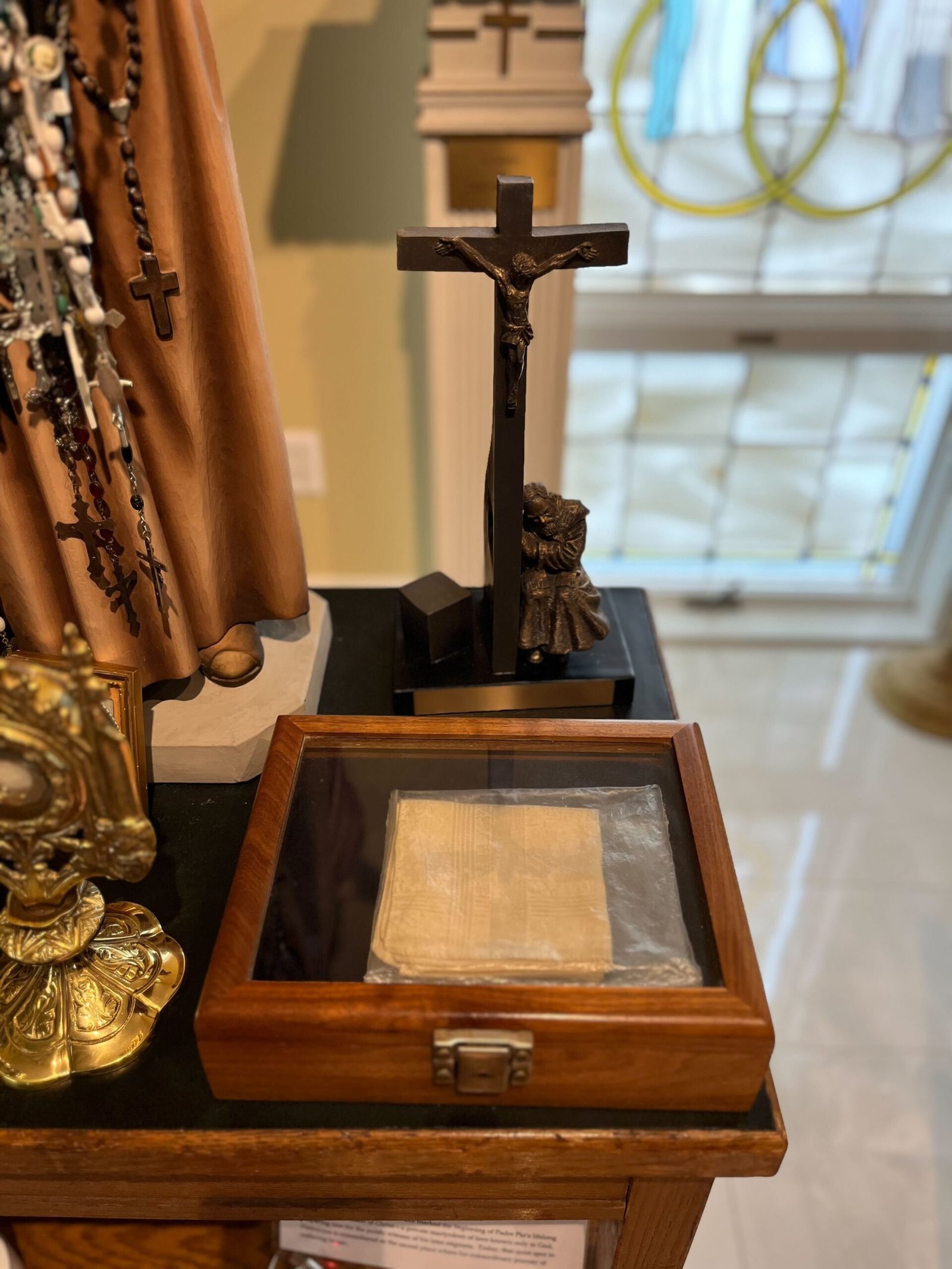 As Joe was telling Marge about Padre Pio’s visit, she noticed a handkerchief that she did not recognize. As she reached for it, Joe said, “That’s Padre Pio’s handkerchief. He put it there on the stand just before he left.”