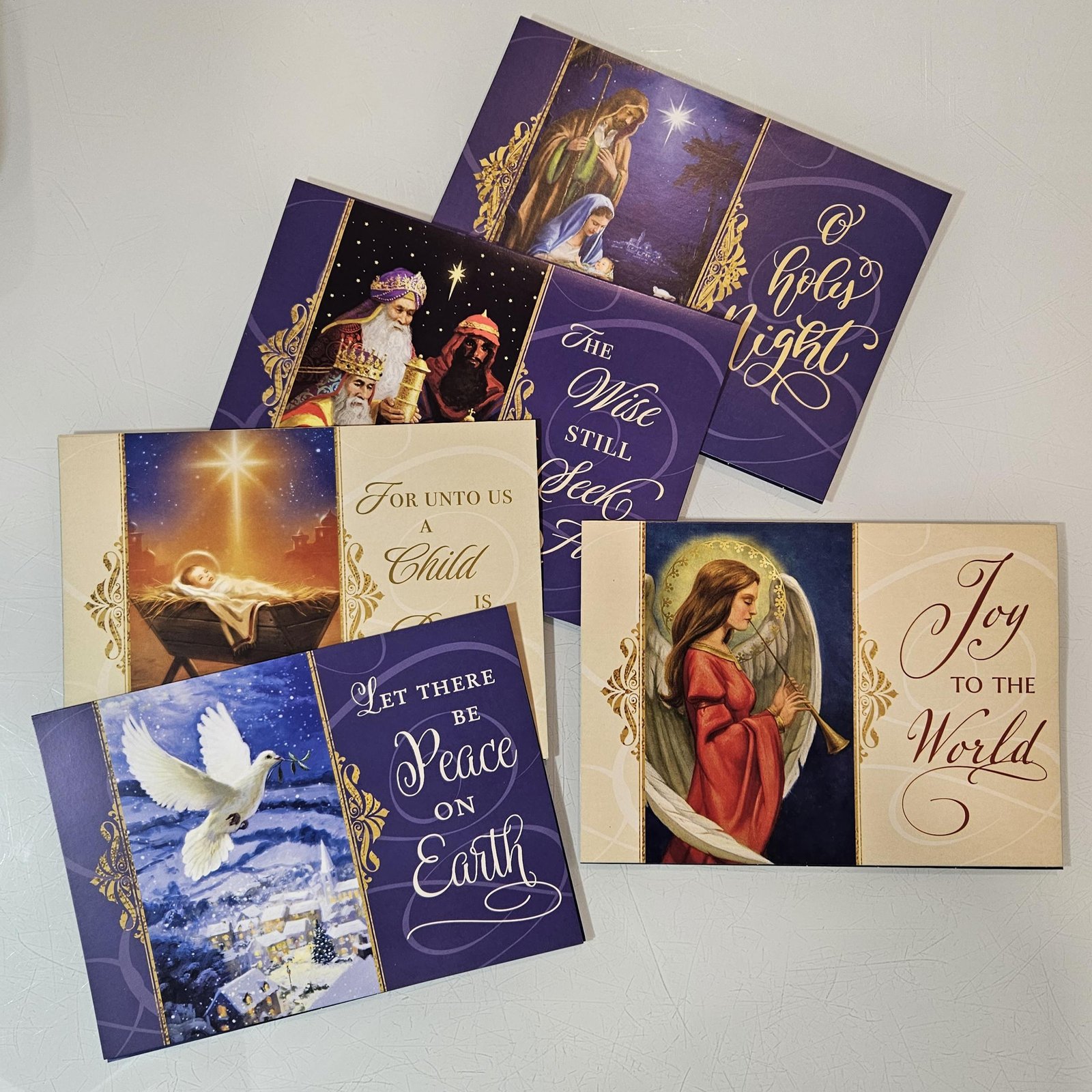 Set of 5 Christmas card with envelopes that all feature a Padre Pio quote on the inside.