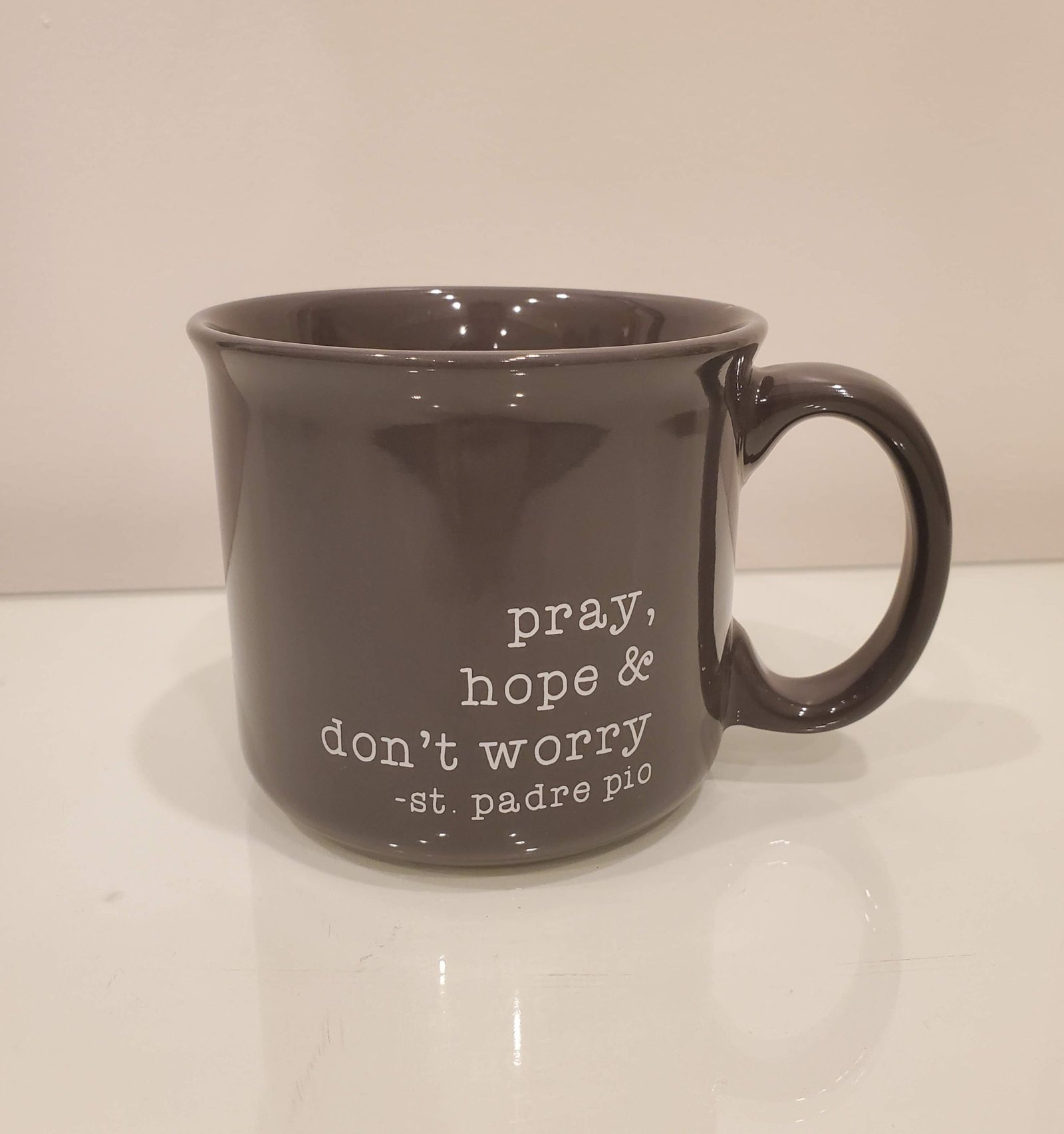 This mug holds 13 oz. of your favorite beverage and had Padre Pio’s most famous quote, “Pray, Hope and Don’t Worry” on the side.