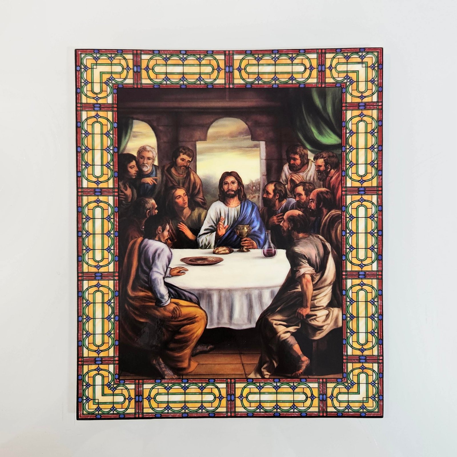 Features a full-color stained glass image of the Last Supper on a durable vinyl that will stick to most glass surfaces.