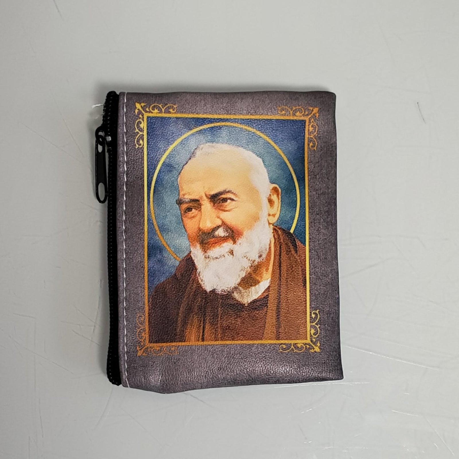 A newly designed double-sided soft vinyl rosary case featuring a picture of Saint Pio. Closes with a zipper and is perfect for holding your favorite rosary!