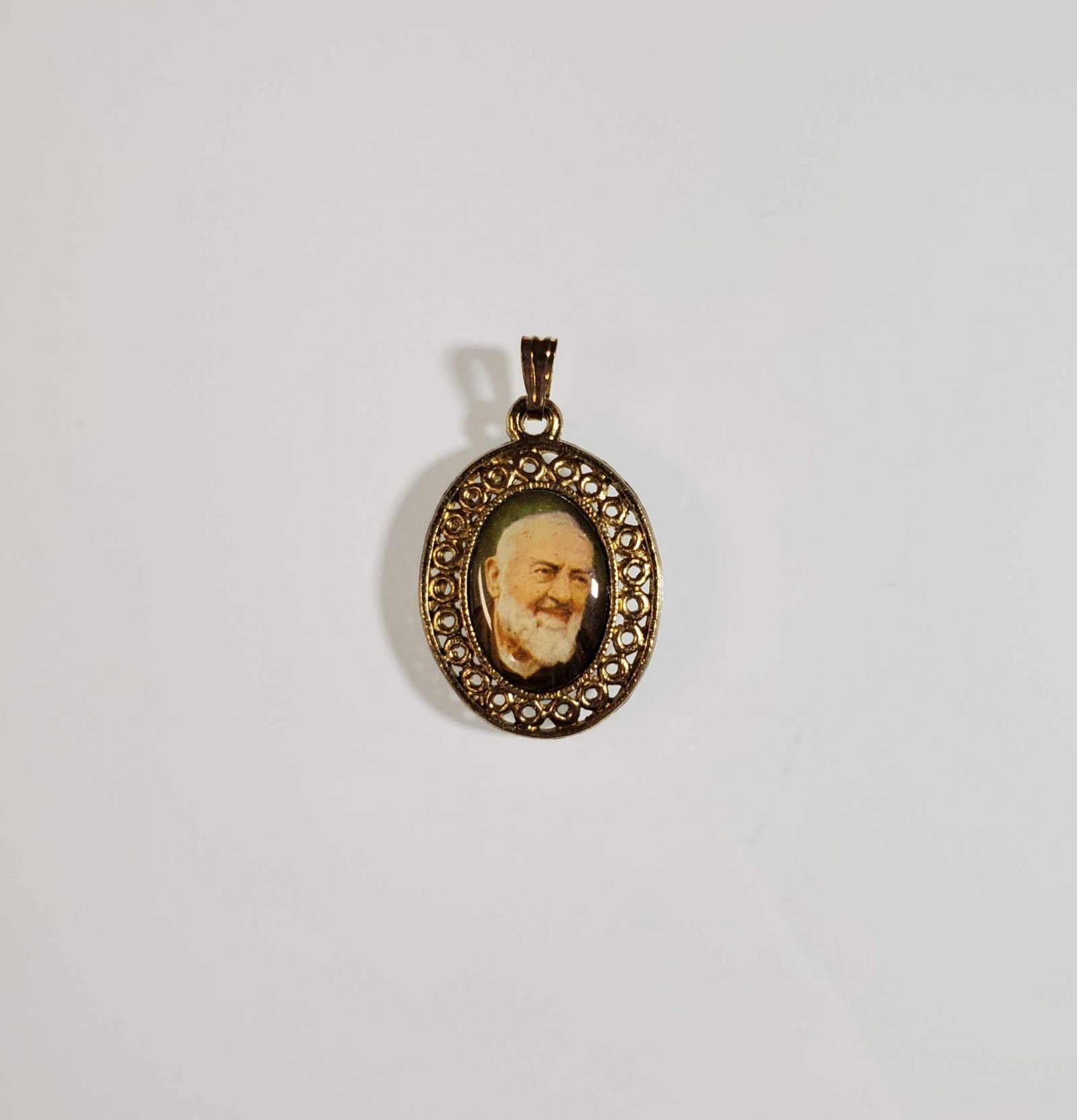 This pendant is a beautiful way to display your devotion to Padre Pio! It has a beautiful color picture of him in the middle and a gold-tone border making the image pop.