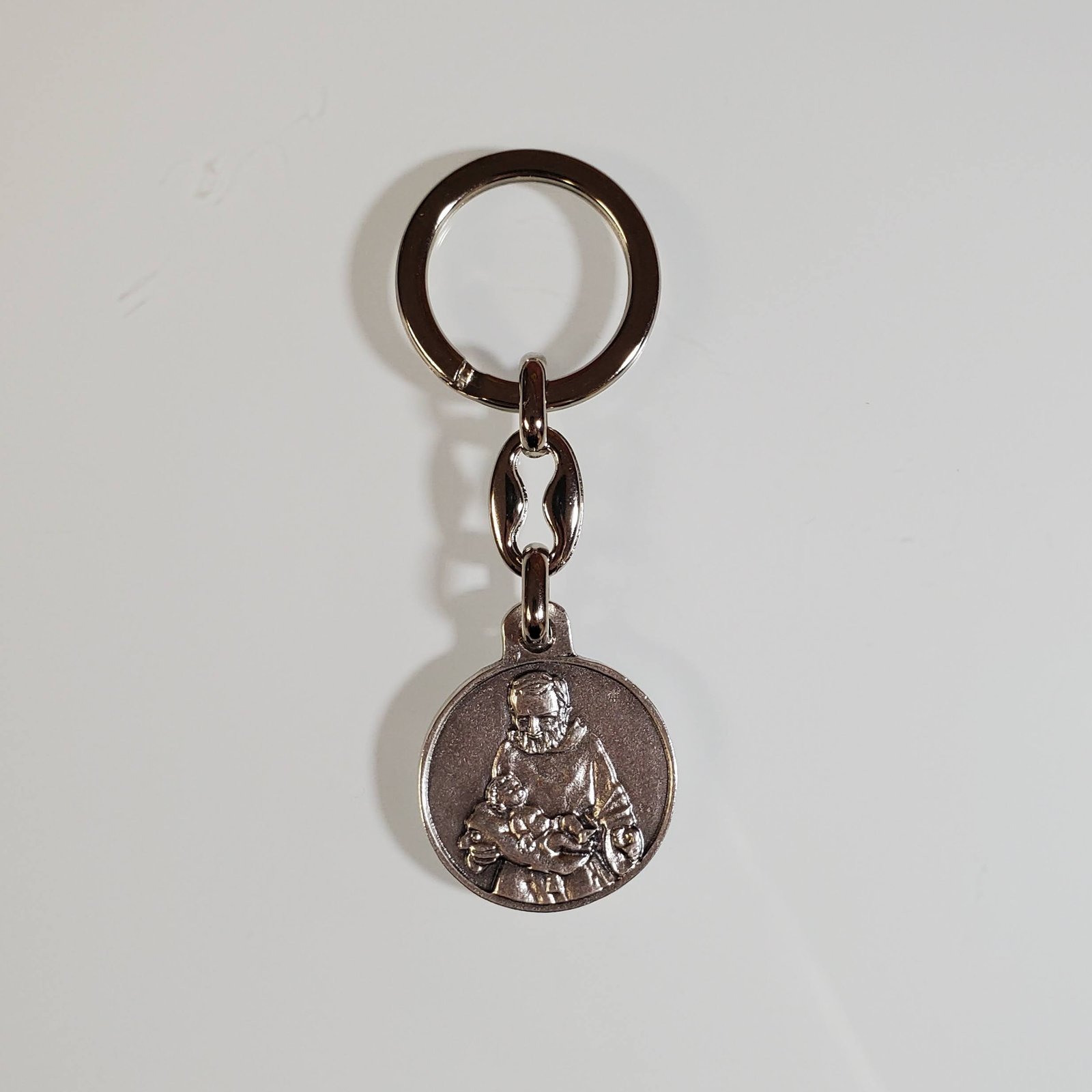 Key ring with Padre Pio image on one side and Pray Hope and Don't Worry on the other.