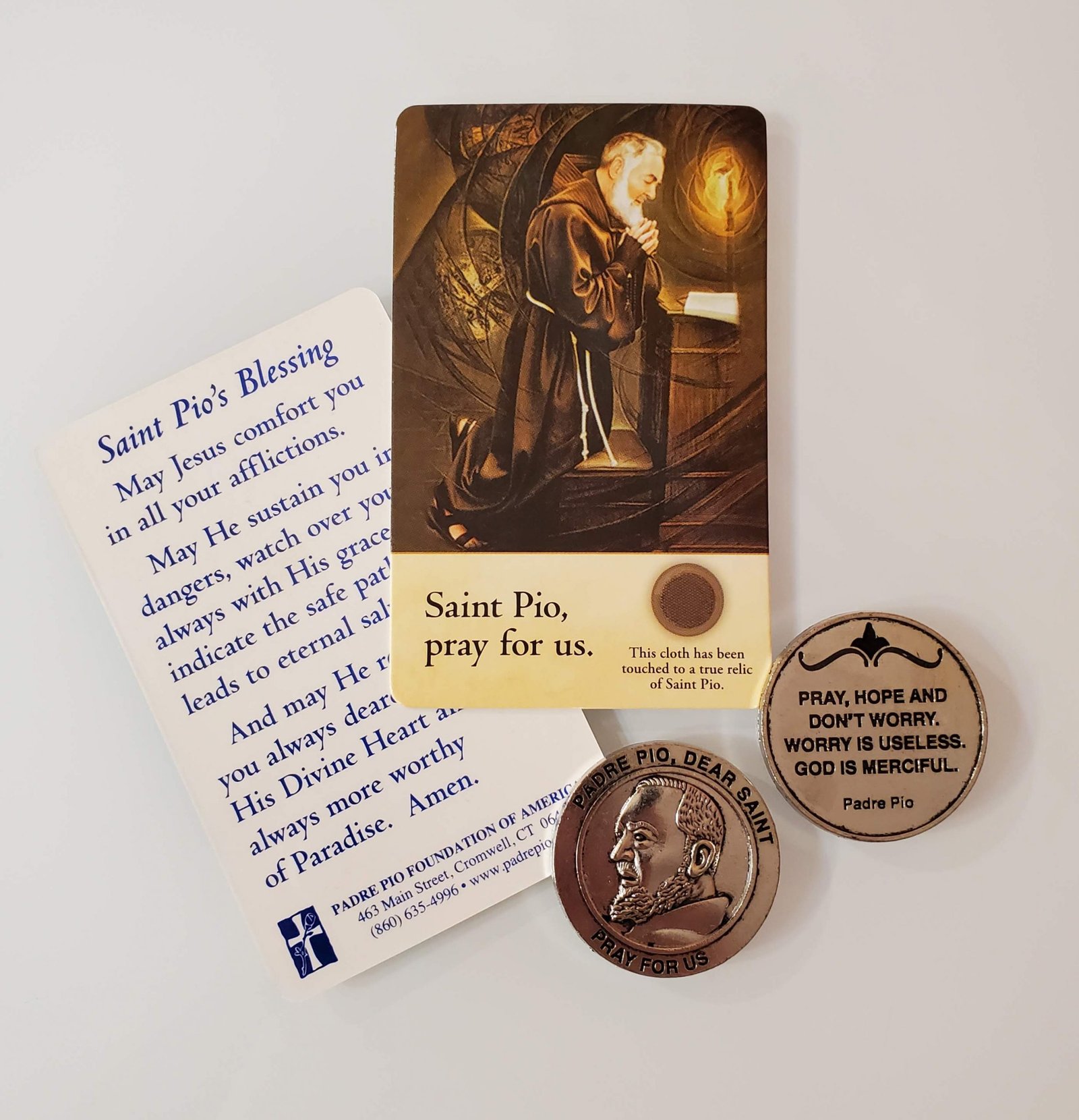 Padre Pio Relic Prayer Card and Coin