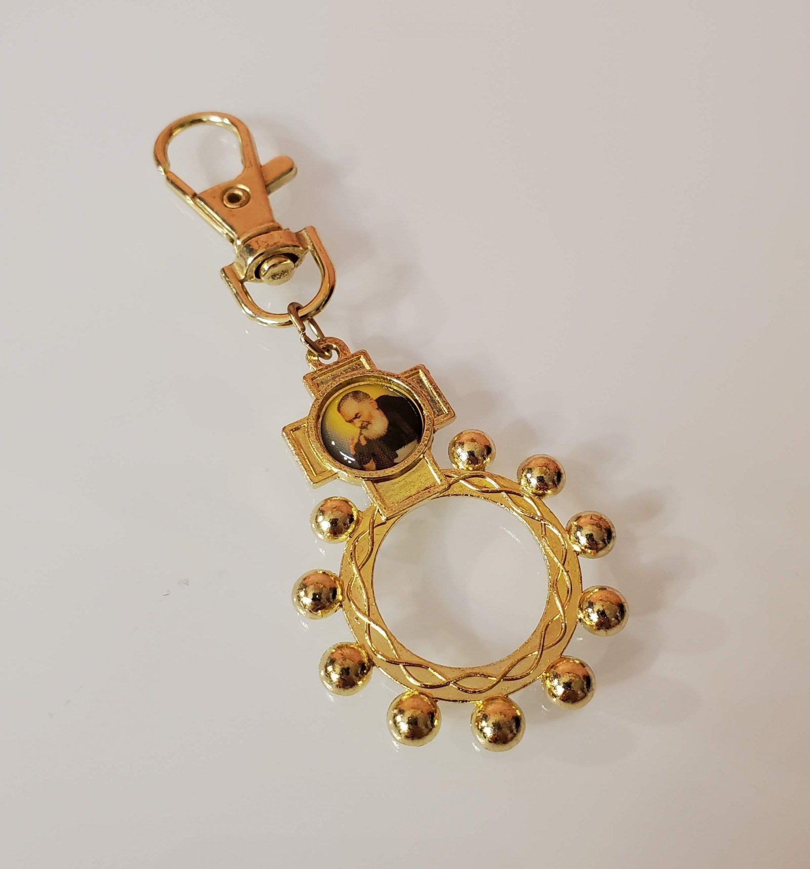 Padre Pio Rosary Ring Lobster Clasp Keychain