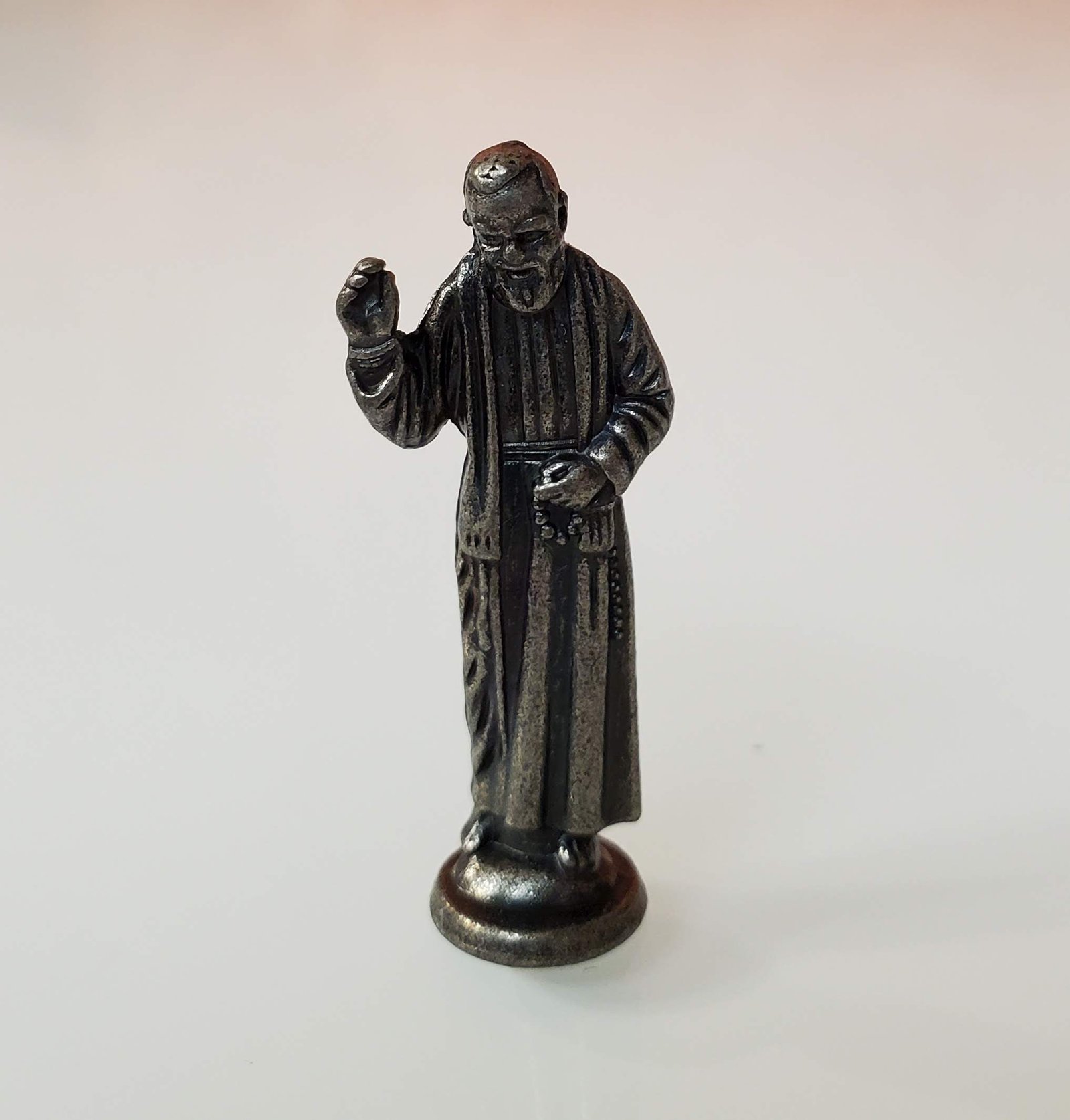 This tall statue is a special way to have Padre Pio in your life. It is silver-toned and has a flat bottom to stand up anywhere in your home.