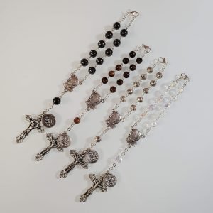 A visor clip for your automobile of a St. Benedict crucifix that comes in three different colored options.